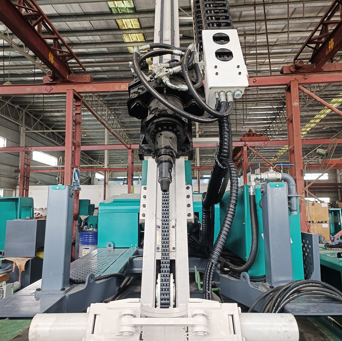 Được tích hợp vào máy kết hợp khoan đá và bắt vít, cơ cấu đẩy dẫn động bằng xích cho phép nạp bu lông đá trơn tru và ổn định.