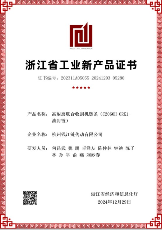 Năm 1991, công ty hợp tác với Viện nghiên cứu bộ truyền động xích của Đại học Cát Lâm để phát triển và sản xuất dây chuyền có vòng chữ O và vòng chữ X, đã được trao "Giải thưởng đặc biệt cho sản phẩm mới xuất sắc trong ngành công nghiệp dây chuyền của Trung Quốc" vào năm 2001. Công ty đã tích lũy lâu dài trong lĩnh vực kỹ thuật dây chuyền kín dầu.