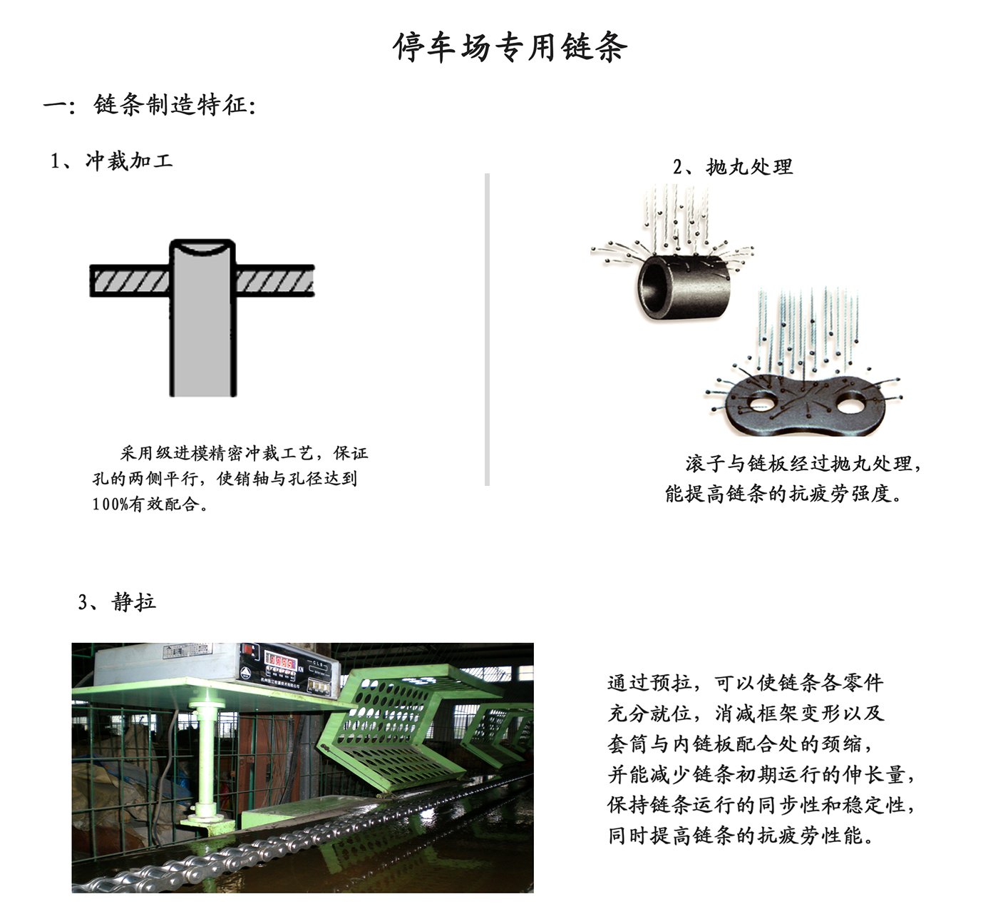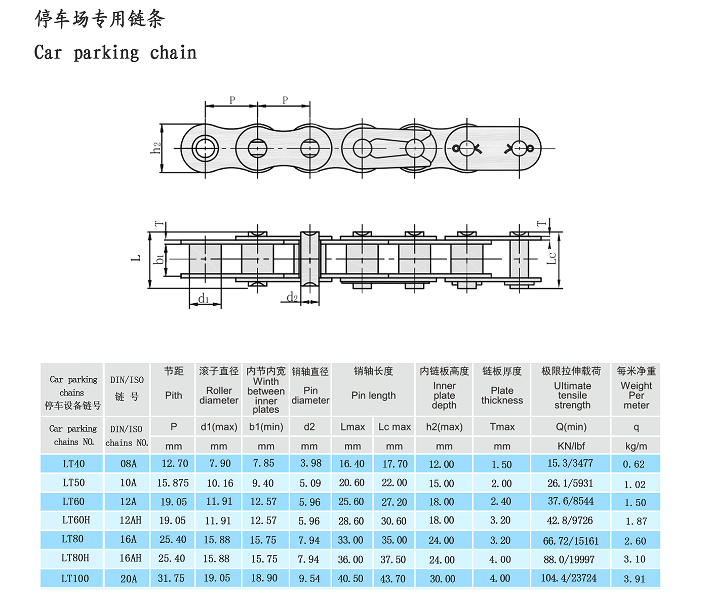 Dây chuyền thiết bị bãi đỗ xe thông minh ba chiều là bộ truyền động giai đoạn hai của phần chính của thiết bị đỗ xe. Tiêu chuẩn triển khai là JB/T11079-2011. Đặc điểm sử dụng của xích: khả năng chịu tải lớn, độ bền kéo cao (độ bền tĩnh), độ bền kéo tối thiểu cao hơn 10% -30% so với xích con lăn chính xác thông thường', chỉ số biến dạng, độ chính xác của chiều dài xích, khả năng chống mỏi, v.v. cũng cao hơn xích con lăn chính xác thông thường'.