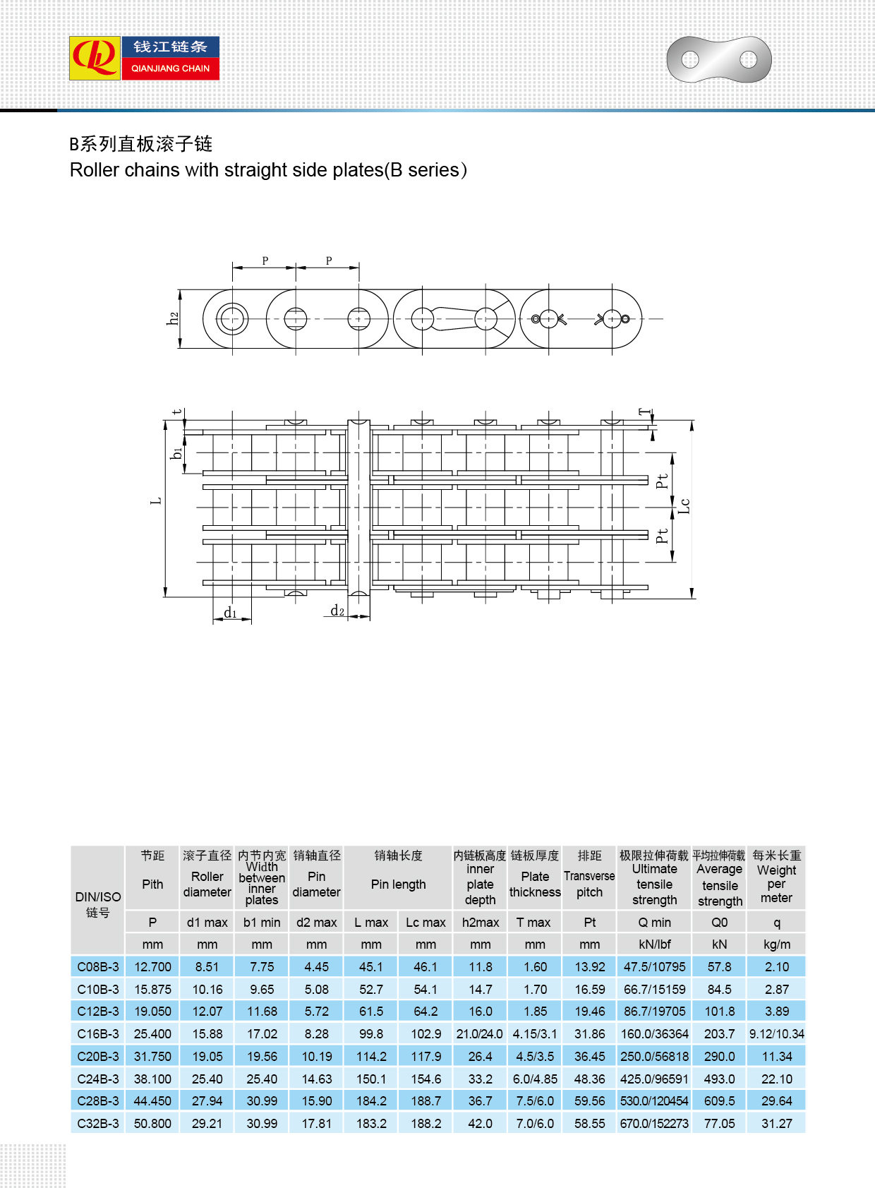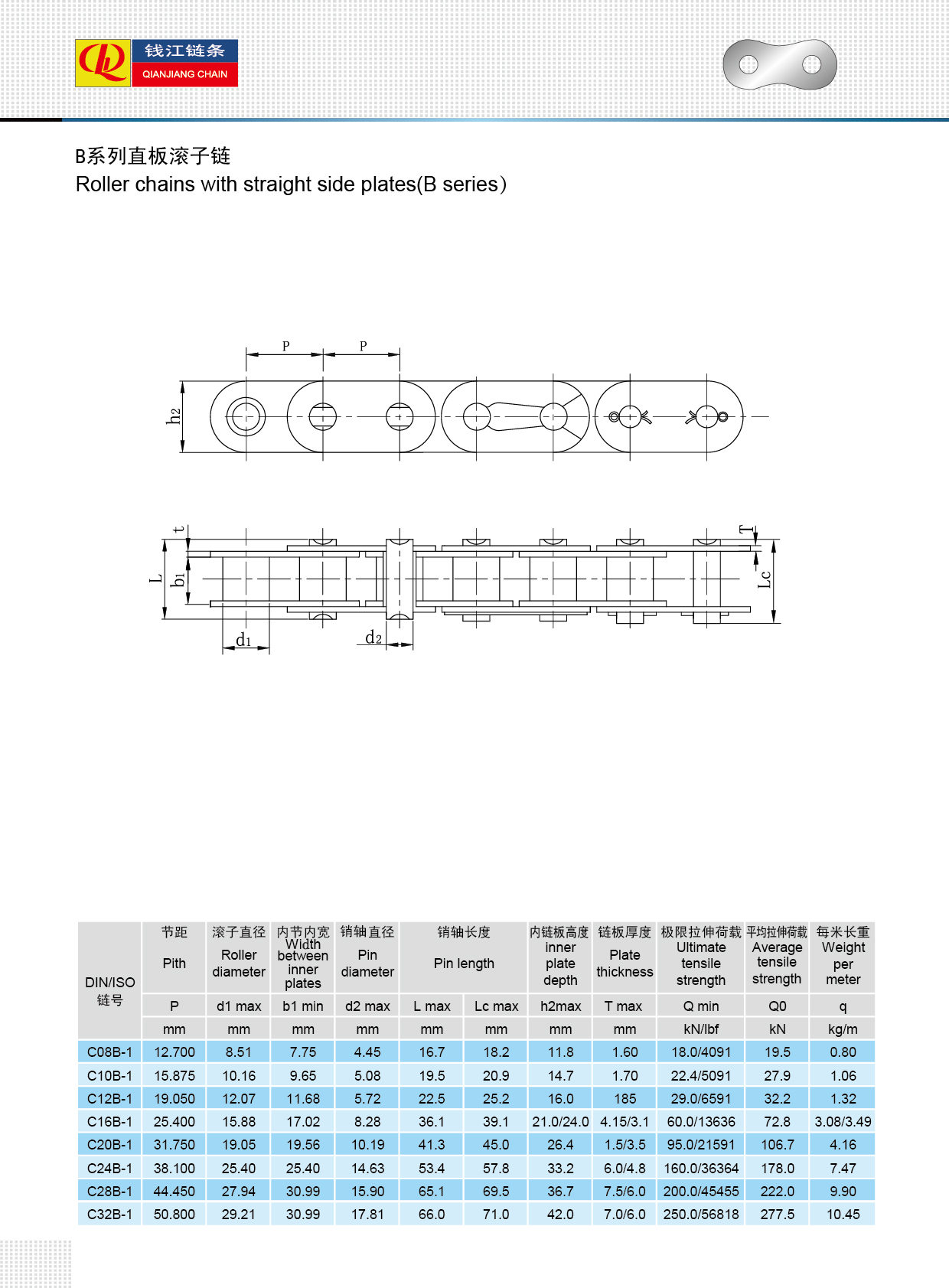 Xích con lăn có tấm bên thẳng (dòng B)