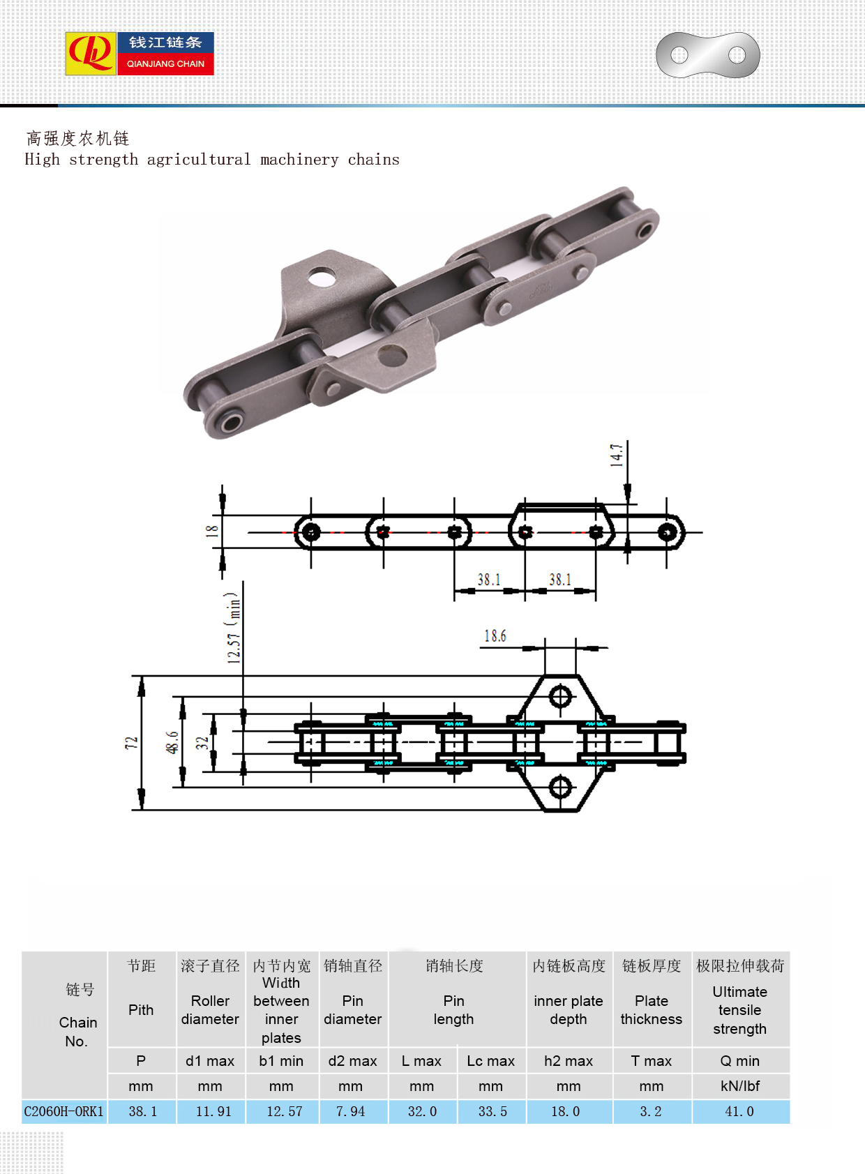 Xích máy nông nghiệp cường độ cao có khả năng chống mài mòn, độ bền và tuổi thọ sử dụng, phù hợp với nhiều điều kiện làm việc phức tạp khác nhau. Vật liệu thép hợp kim chất lượng cao được sử dụng, độ bền kéo và tuổi thọ mỏi của xích được nâng cao thông qua các quá trình xử lý nhiệt (chẳng hạn như cacbon hóa, tôi luyện và làm nguội). Bề mặt tiếp xúc xích được làm cứng đặc biệt, bề mặt nhẵn và chịu mài mòn tốt, thích hợp cho công việc tần số cao. Công nghệ xử lý chính xác đảm bảo các mắt xích ăn khớp chặt chẽ, chạy êm ái, giảm tiếng ồn và độ rung. Nhiều bước, cường độ và hình thức khác nhau (chẳng hạn như xích con lăn, xích phụ kiện, xích tấm uốn cong, v.v.) có thể được tùy chỉnh theo nhu cầu hỗ trợ của các máy móc và thiết bị nông nghiệp khác nhau. Được sử dụng trong cơ cấu truyền động vận chuyển, cắt, đập lúa mì, gạo, máy gặt ngô,… Dẫn động đĩa gieo hạt và trục phân bón đòi hỏi xích phải chạy chính xác và bền bỉ. Áp dụng cho băng tải nông nghiệp, thang máy chở vật liệu, v.v., để thực hiện các nhiệm vụ vận chuyển tần suất cao.