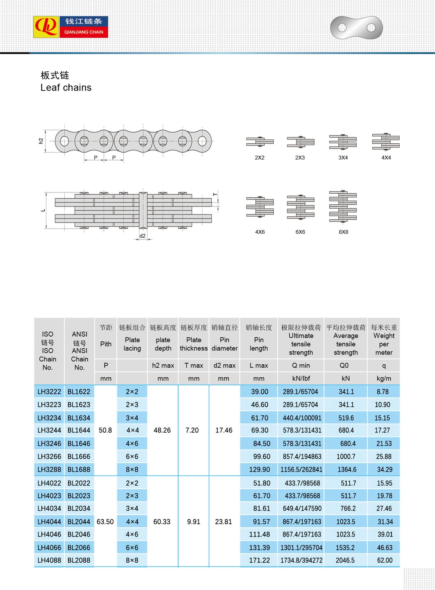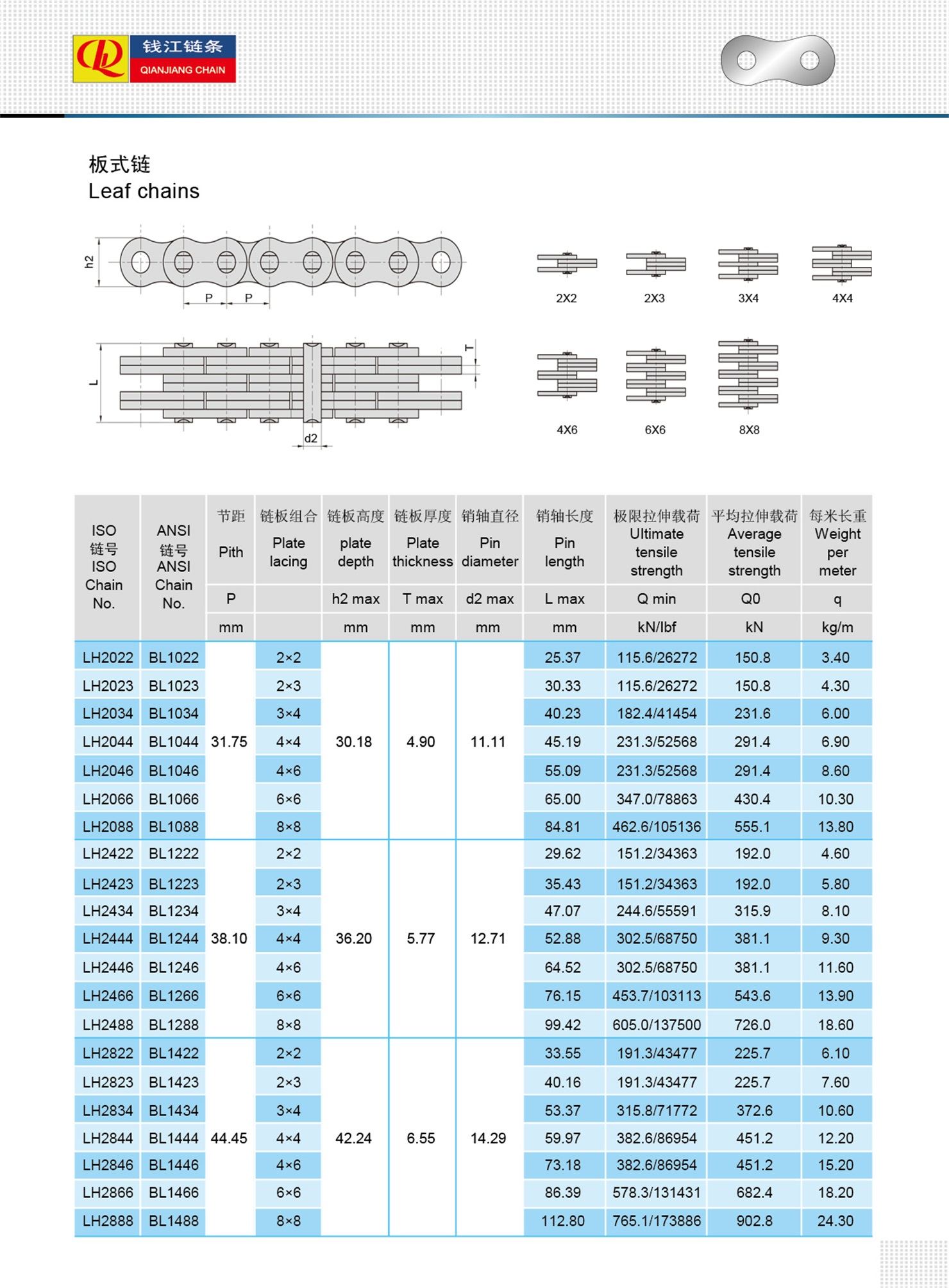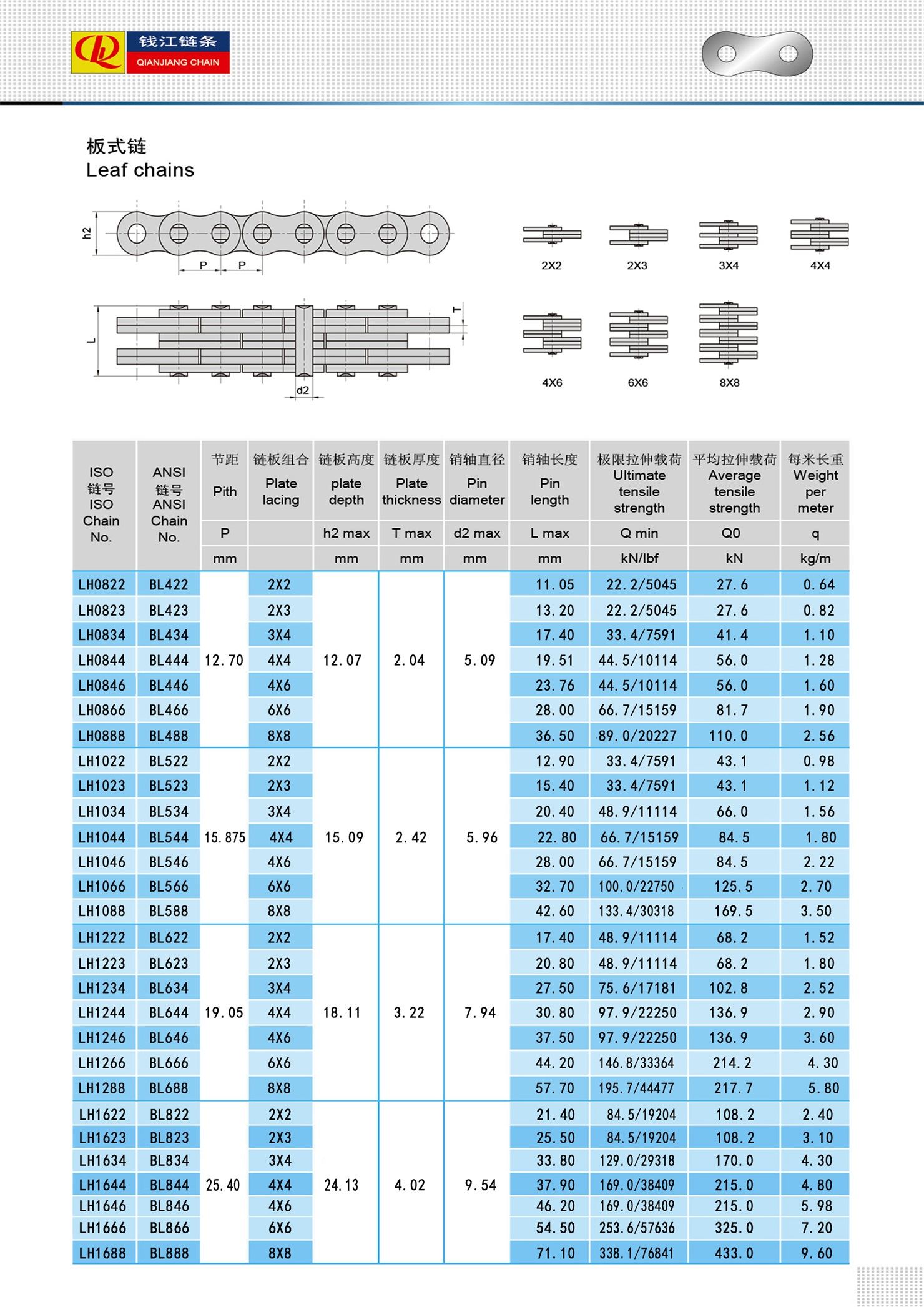 Thường được sử dụng trong xe nâng, hệ thống xử lý vật liệu và thiết bị nâng, xích lá LH (BL Series) là lựa chọn lý tưởng khi sức mạnh và độ tin cậy là rất quan trọng. Độ bền mỏi cao và khả năng chống giãn dài giúp chúng phù hợp với các công việc nâng hạ lặp đi lặp lại và các công việc nặng nhọc.